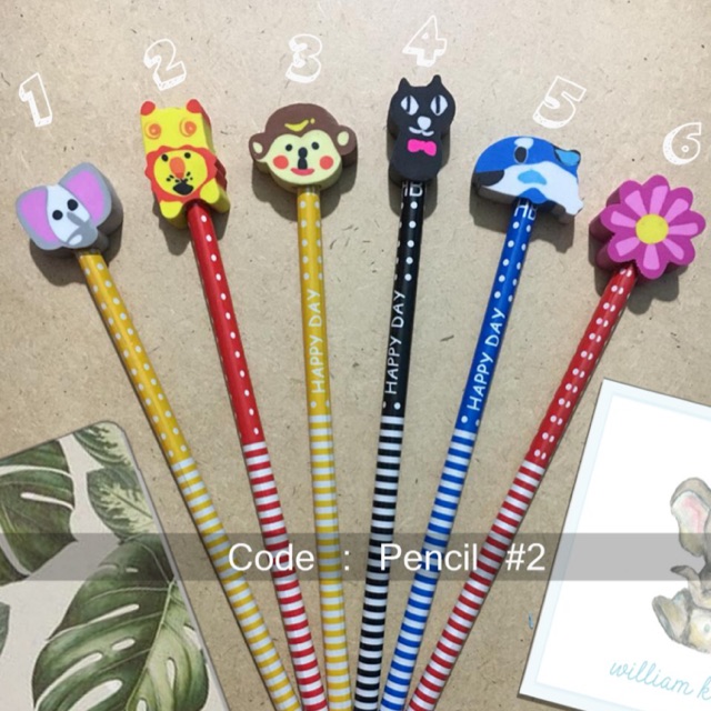 Pensil dengan karakter penghapus diatasnya