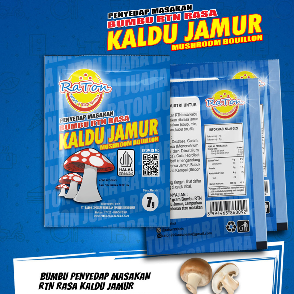 Bumbu Penyedap Masakan Rasa Kaldu Jamur adalah bumbu serbaguna berbahan dasar jamur pilihan, diformulasikan untuk menghadirkan cita rasa umami yang alami tanpa tambahan kaldu hewani. Cocok untuk masakan rumahan maupun komersial, bumbu ini menjawab kebutuhan konsumen modern akan cita rasa gurih yang sehat dan praktis.