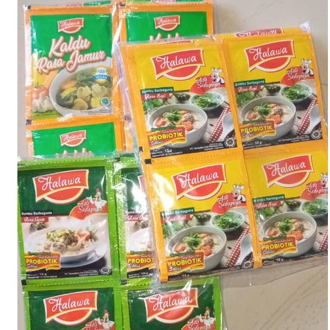 Penyedap rasa Halawa, mengandung probiotik, hadir dengan 3 varian rasa, rasa ayam, rasa sapi, dan rasa jamur