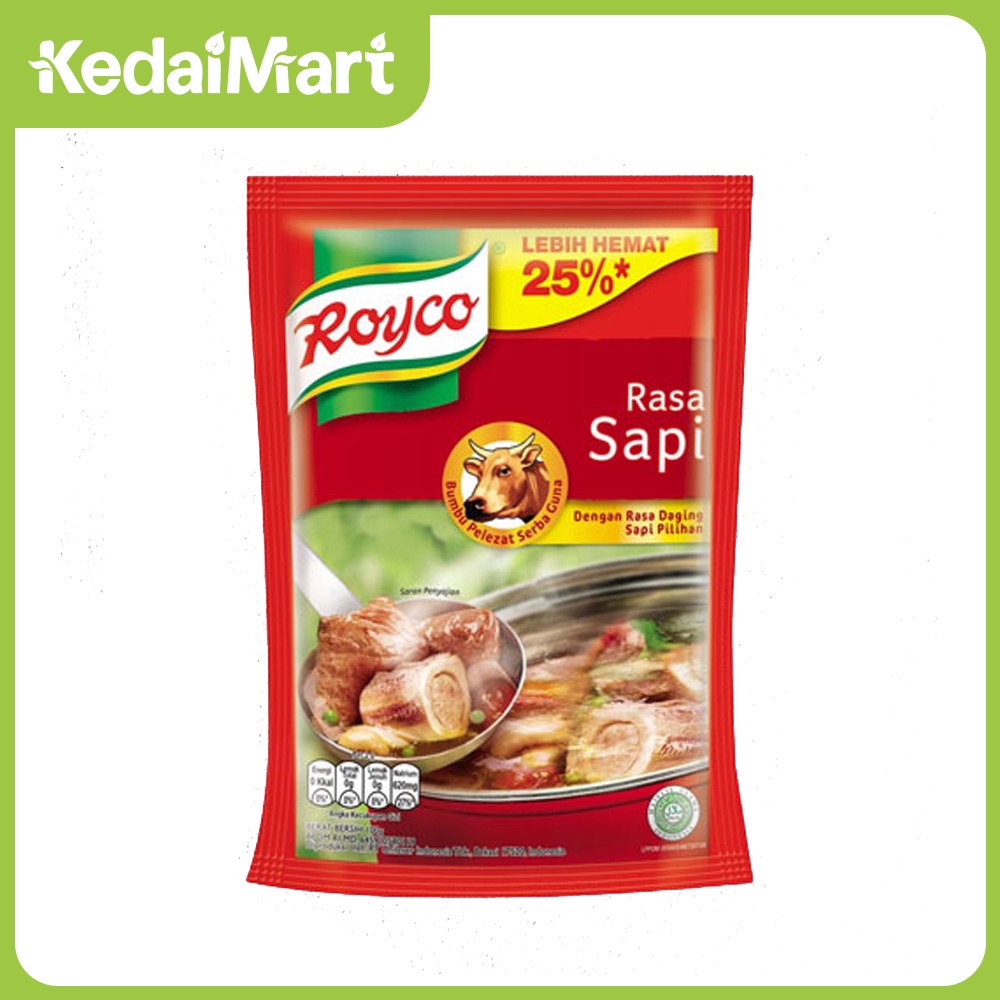 Penyedap Royco Sapi terbuat dari daging sapi pilihan serta rempah alami Indonesia. Penyedap ini mudah larut sehingga cocok untuk beragam hidangan seperti berkuah atau aneka tumisan, menambah rasa gurih dan dibuat dengan bahan alami serta tidak menggunakan bahan pengawet.