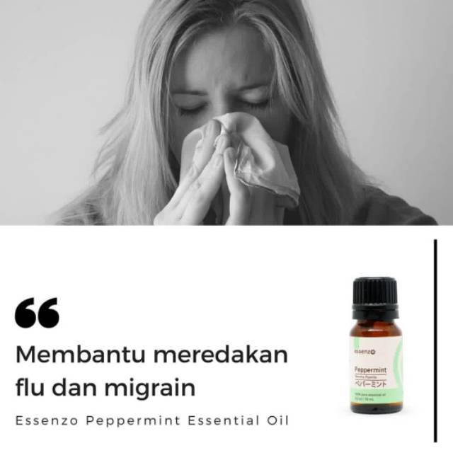 Peppermint Essential Oil dari Essenzo ini sangat berkhasiat untuk mengatasi Migrain & Flu, karena Peppermint Essential Oil dari Essenzo terbuat dari 100% konsentrasi liquid Peppermint Alami tanpa ada bahan campuran apapun.