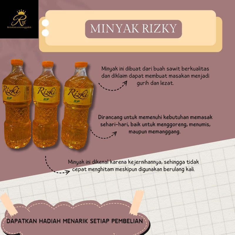 Minyak goreng Rizki Botol 1 lt adalah minyak goreng sawit yang diklaim diproses dari buah sawit pilihan berkualitas dan dapat membuat masakan menjadi gurih dan lezat ♥️