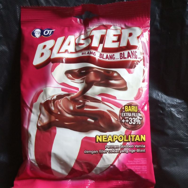 Permen Blaster Neapolita , permen stroberi vanila dengan filter coklat yang nge-Blast