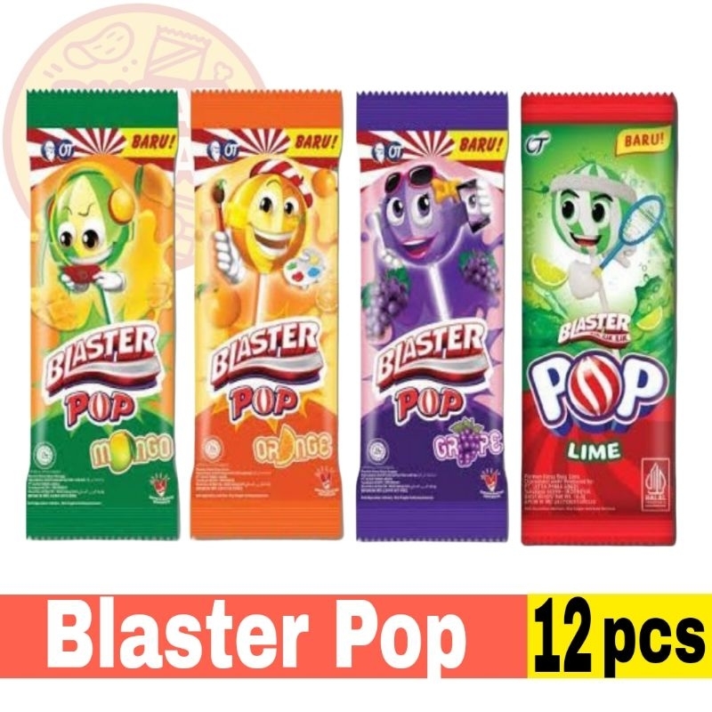 Permen Blaster Pop Rasa Mango / Jeruk / Anggur / Lime Renceng isi 12pcs