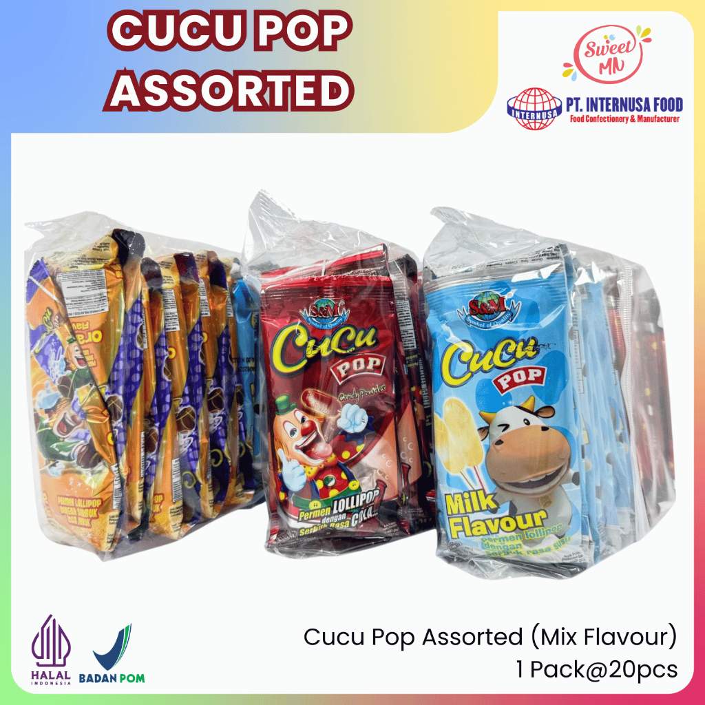 Permen Cucu Pop Assorted Fruit merupakan permen lolipop dengan berbagai rasa buah yang segar dan manis. Setiap permen memiliki rasa buah yang berbeda, memberikan variasi dan kenikmatan saat dikonsumsi. Kemasan praktis dalam 1 pack berisi 20 pcs, cocok untuk camilan keluarga atau dijadikan hadiah.