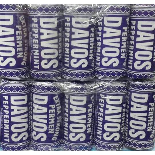 Permen Davos Peppermint Extra Strong Roll, 1 pak isi 10 roll, berat bersih per roll 22gr, total berat bersih 250gr...
