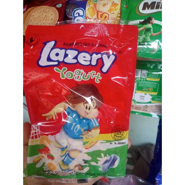 PERMEN LAZERY , PERMEN KEMBANG GULA LUNAK RASA JERUK YOGURT, STROBERY YOGURT, DAN NANAS YOGURT