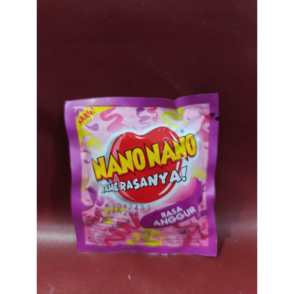 Rasa Anggur yang Menyegarkan: Permen Nano Nano Anggur menawarkan rasa anggur yang segar dan autentik. Setiap butir permen membawa kesegaran buah anggur yang menggugah selera dan menyenangkan.