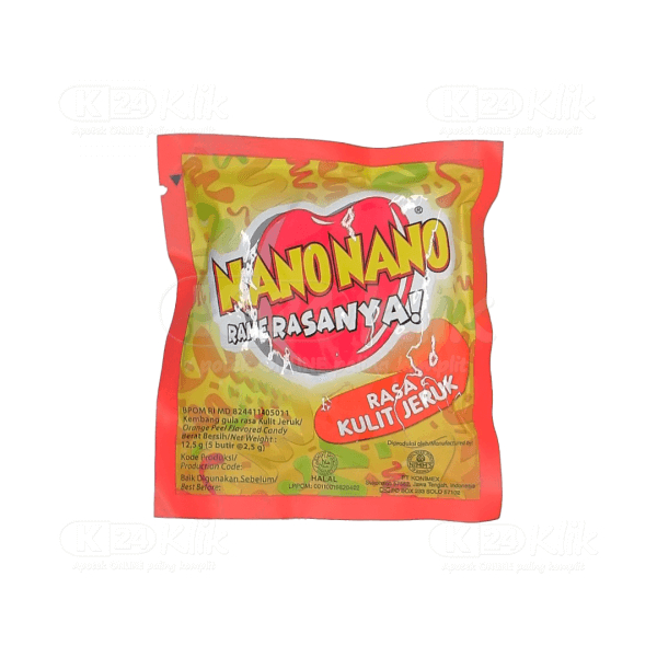 Manis, Asam, Asin Ramai Rasanya!! Permen Nano-Nano, permen dengan rasa manisan buah, produksi PT. Konimex. Dijual per bungkus isi 5 butir permen bernetto 2.5 gr perbutirnya.
