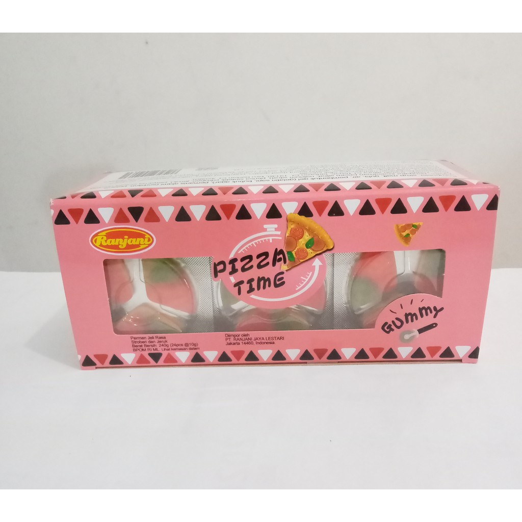 Permen Ranjani Pizza Time 240g adalah Permen Jeli Rasa Stroberri dan Jeruk.