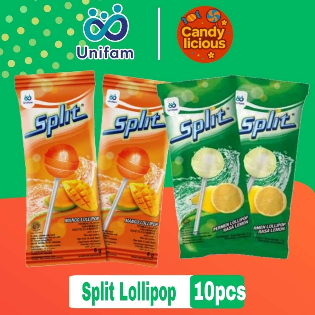 Permen Split Lollipop Rasa Mangga / Lemon Renceng isi 10pcs