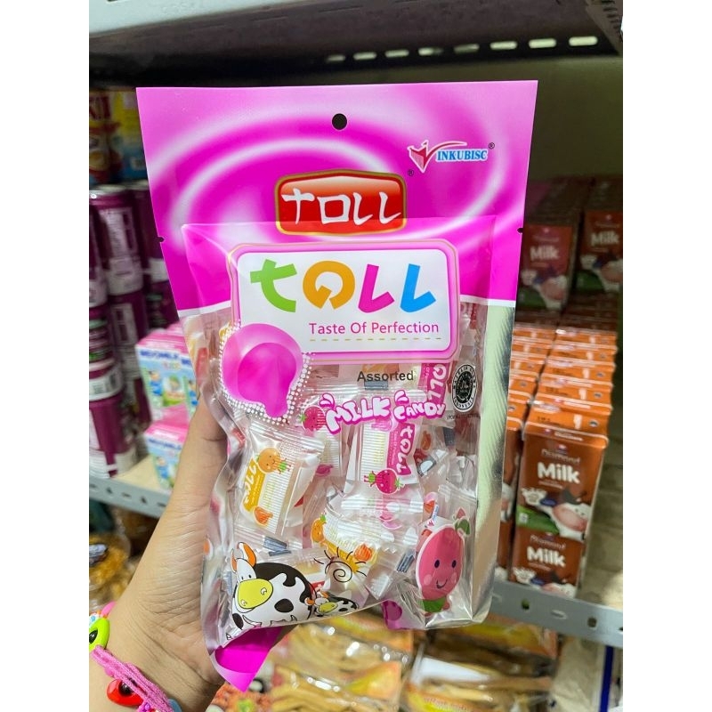 Permen Susu Toll Milk Candy dengan berat bersih 120 gram. Produk ini sudah terjamin halal dan memiliki nomor registrasi BPOM RI MD 272833000100894. Satu porsi permen ini hanya sekitar 4 gram dan setiap kemasan berisi sekitar 30 pcs.