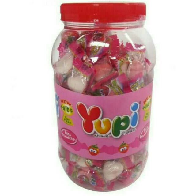 Permen yupi strawberry kis jar 300 gr