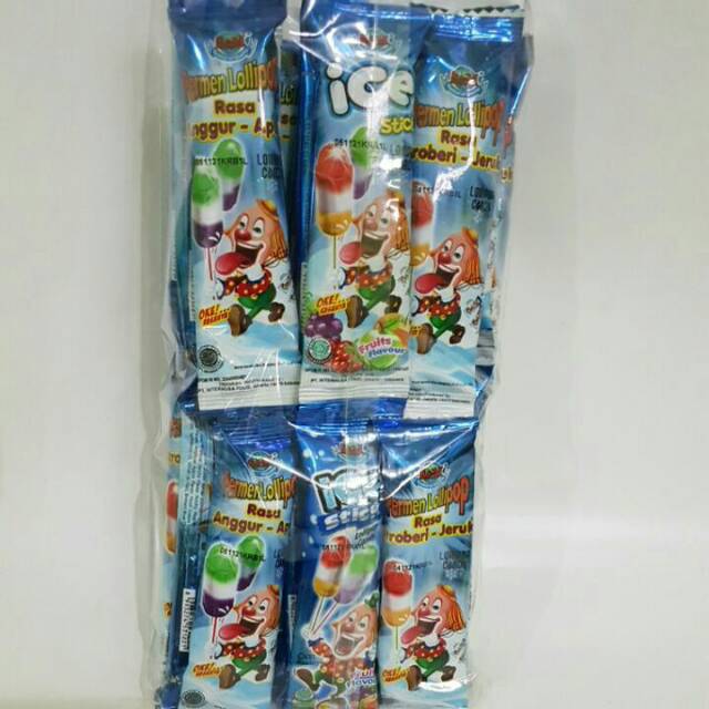 Permen lollipop rasa stroberi-jeruk-anggur-apel
