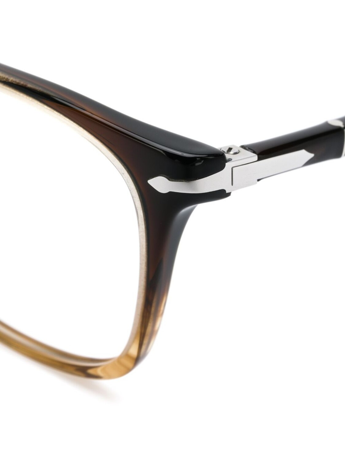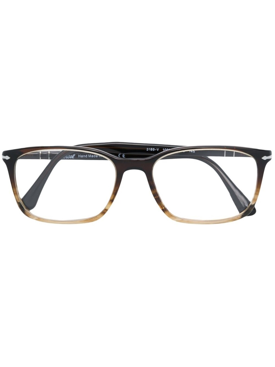 Очки в прямоугольной оправе от Persol. Прямоугольная оправа, серебристая фурнитура и логотип бренда на оправе. Прилагается защитный чехол.