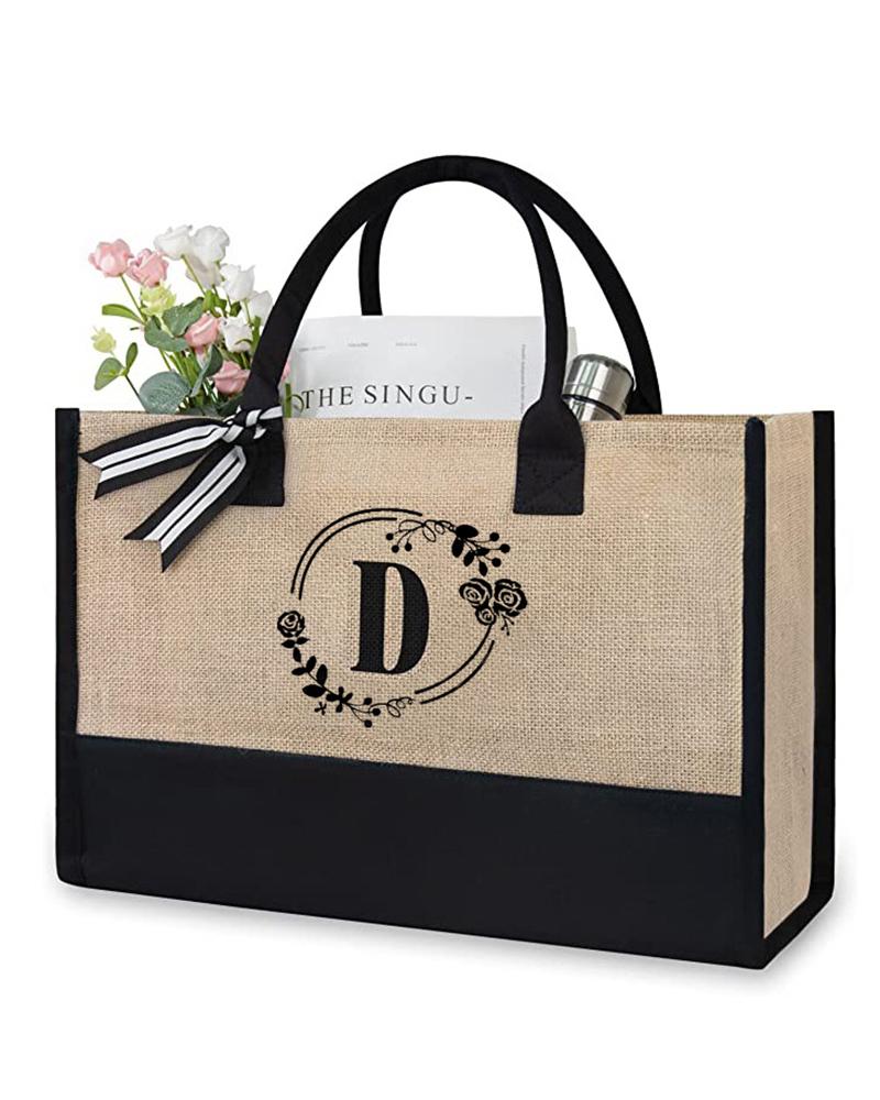 Personalized Gift Letter Pattern Large Capacity Canvas Tote Bag, Style2