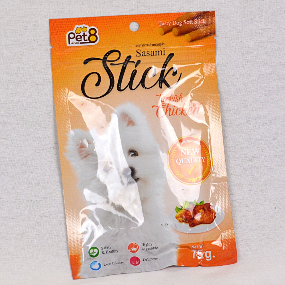 PET8 Snack is made from highest quality grade ingredient. The product made from the highest standard industry for safety and sanitary food. You can be sure that you are serving your pets with the most delicious and highly digestible. Suitable for feeding as food supplement, snack or reward to give your pets the BEST LOVE!_x000D_Provides your pets favorable taste and protein_x000D_No contaminant_x000D_Many flavour available : Chicken, Milk, Liver, Spinach, Carrot , Beef , Bacon