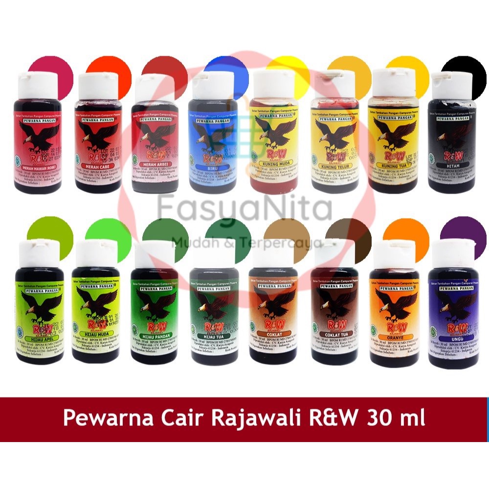 HARAP BACA SYARAT & KETENTUAN TOKO ! Dengan ORDER, kami anggap Anda sudah MEMBACA, MENGERTI & MENYETUJUI semua ketentuan tersebut. Pewarna Makanan Cair Rajawali R&W 30 ml :