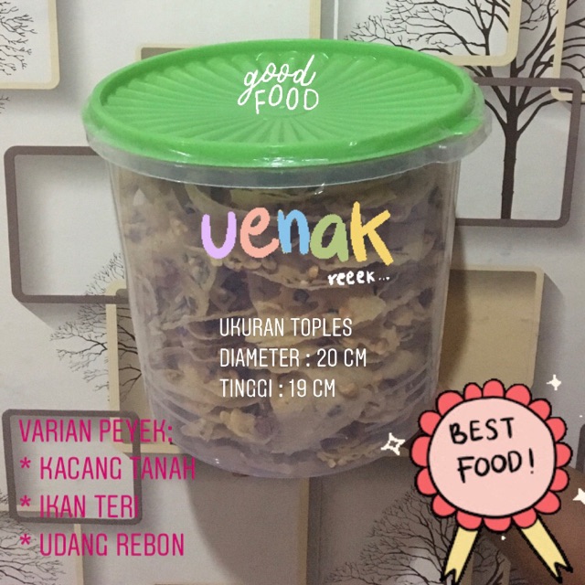 Peyek Kacang/ Teri/ Rebon, 1 Toples isi satu Varian, Diameter Toples 20cm, Tinggi Toples 19cm, Rasa renyah & Gurihnya PAS.