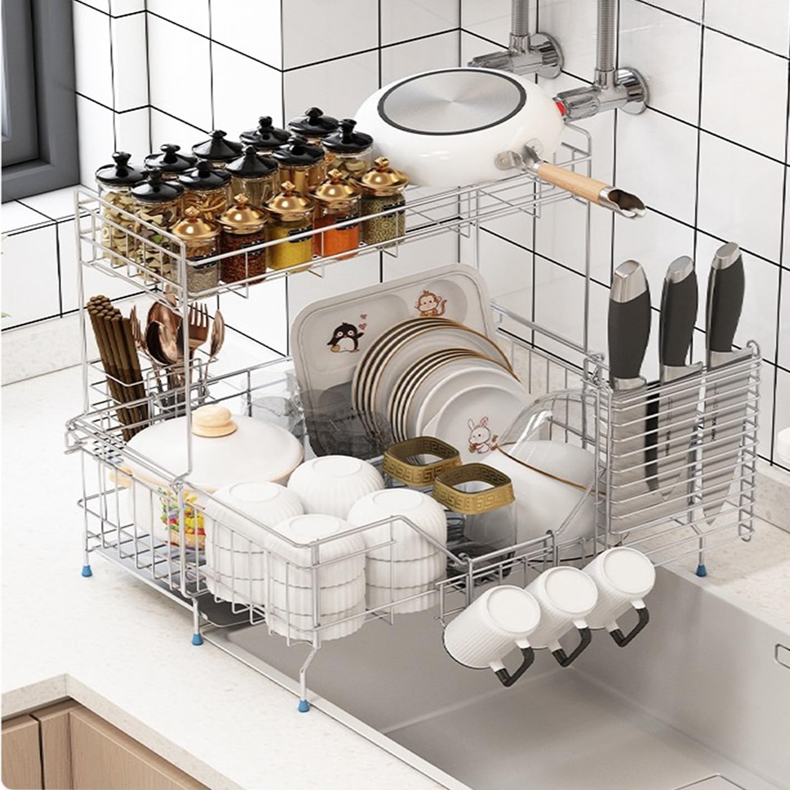 Philiamumu Сушилка для посуды Ширина x Глубина 47см x Большая Сушилка для посуды из нержавеющей стали Новая жизнь сушилка, 2-ярусная, сушилка, Узкая, Расширяемая, сушилка, 20-37см 20см,