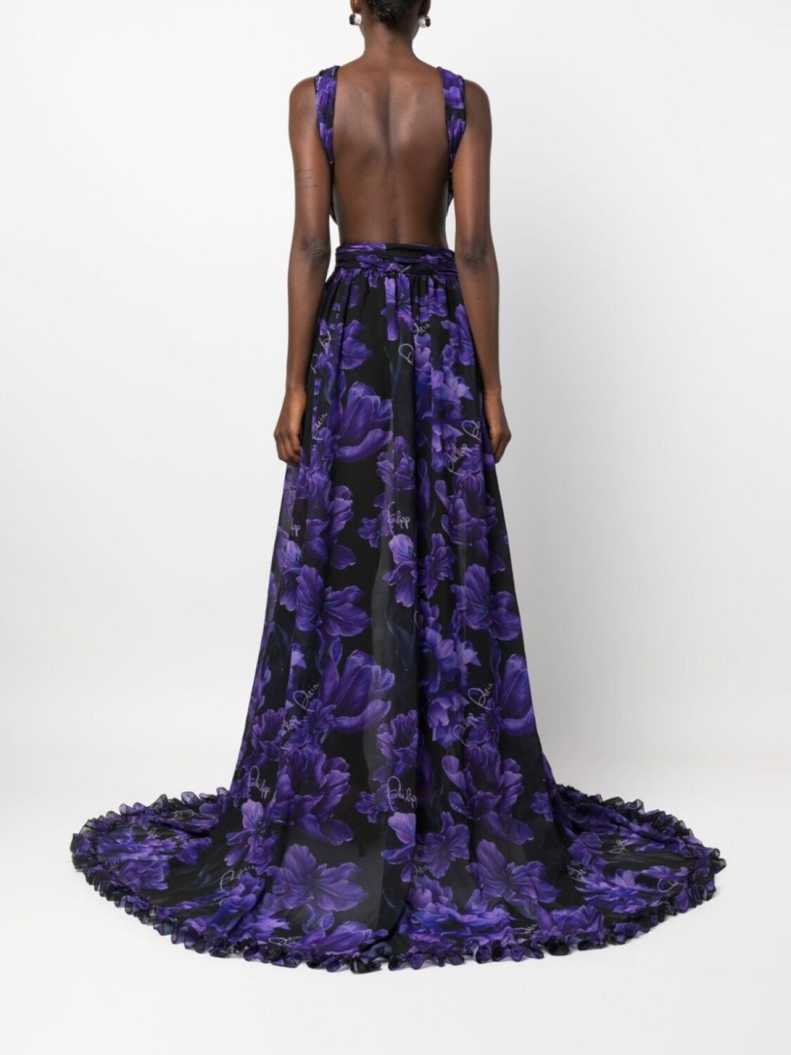 Philipp Plein шифоновое платье макси с цветочным принтом, черный