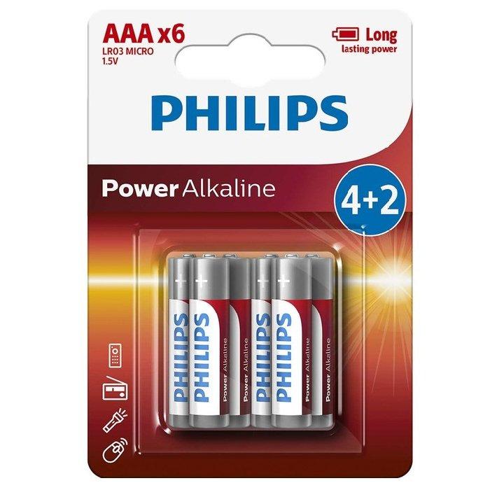 Philips lighting battery alkaline aaa 1. 5v, 4+2 pcs, lr03p6b/97