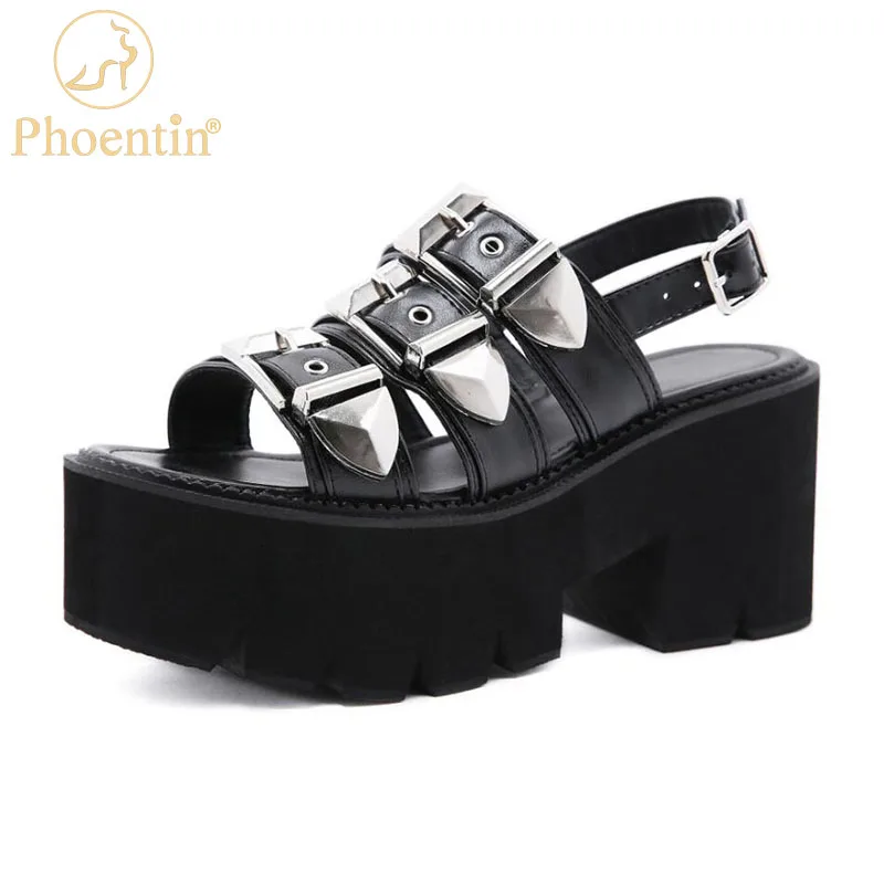 Phoentin женские черные панк-сандалии на платформе с открытым носком; Толстые нижние сандалии 2021 Летняя обувь в римском стиле, повседневная раз...