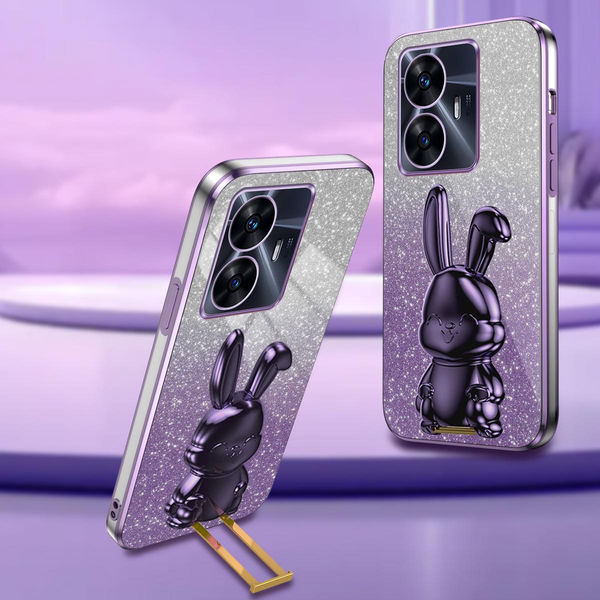 Phone Cover for Realme C55 Cartoon Rabbit Electroplating PC+TPU Case with Kickstand Purple