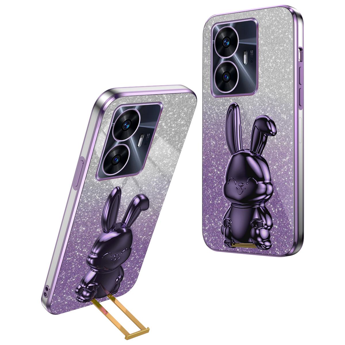 Phone Cover for Realme C55 Cartoon Rabbit Electroplating PC+TPU Case with Kickstand Purple