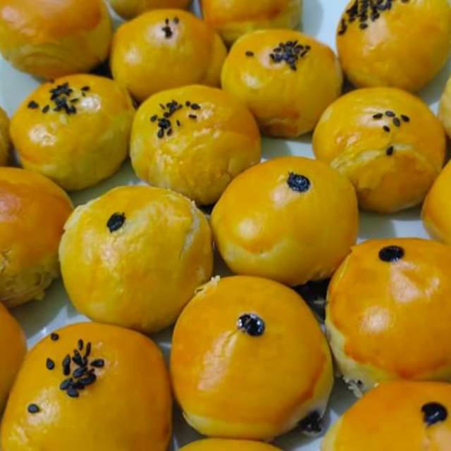 Pia mini khas oleh oleh dari daerah gorontalo, sudah di modifikasi dengan isian coklat yg lumer, tersedia isian keju dan coklat lumer.