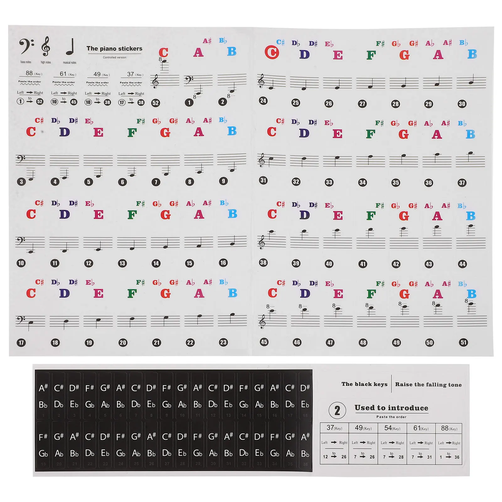 Piano Keyboard Stickers 2 Sheets For Electronic Piano Keys Beginner Learning Tool Decals Music Instrument Supplies