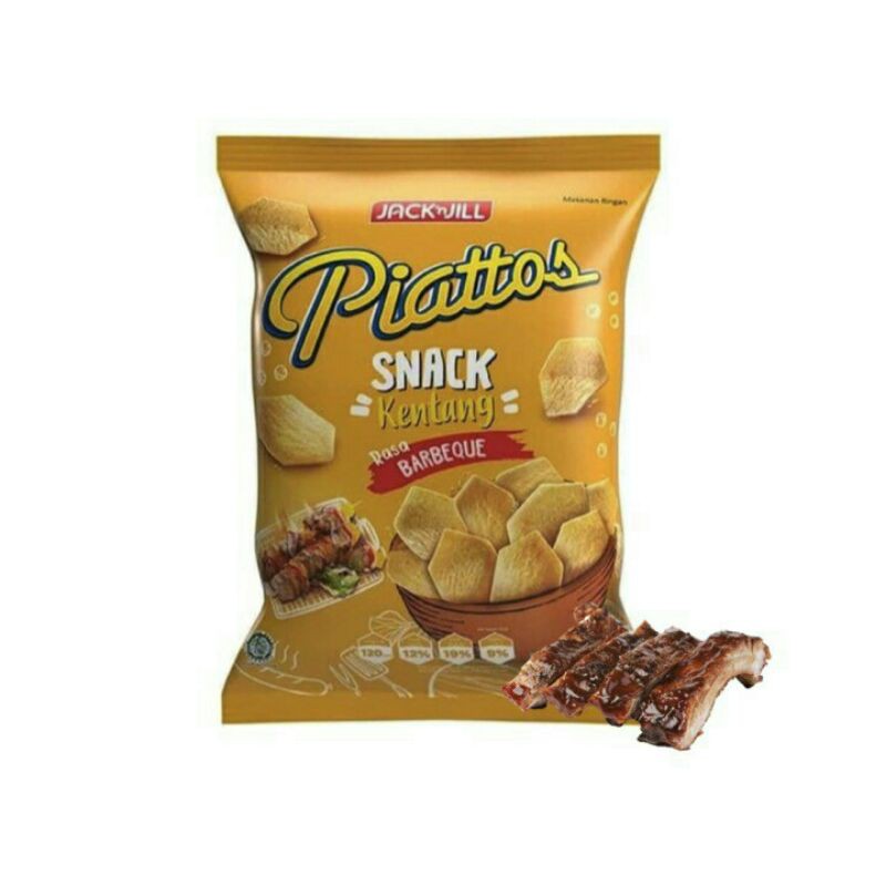 Piattos BBQ 80gr adalah salah satu camilan renyah dan gurih yang dapat menjadi pilihanmu. Merupakan keripik kentang berbentuk segi enam yang unik dengan tekstur yang tebal. Piattos dihasilkan dari kentang pilihan dan bumbu Bbq lezat yang akan menjadi kesukaanmu BPOM -,Shelf Life: 12 Bulan