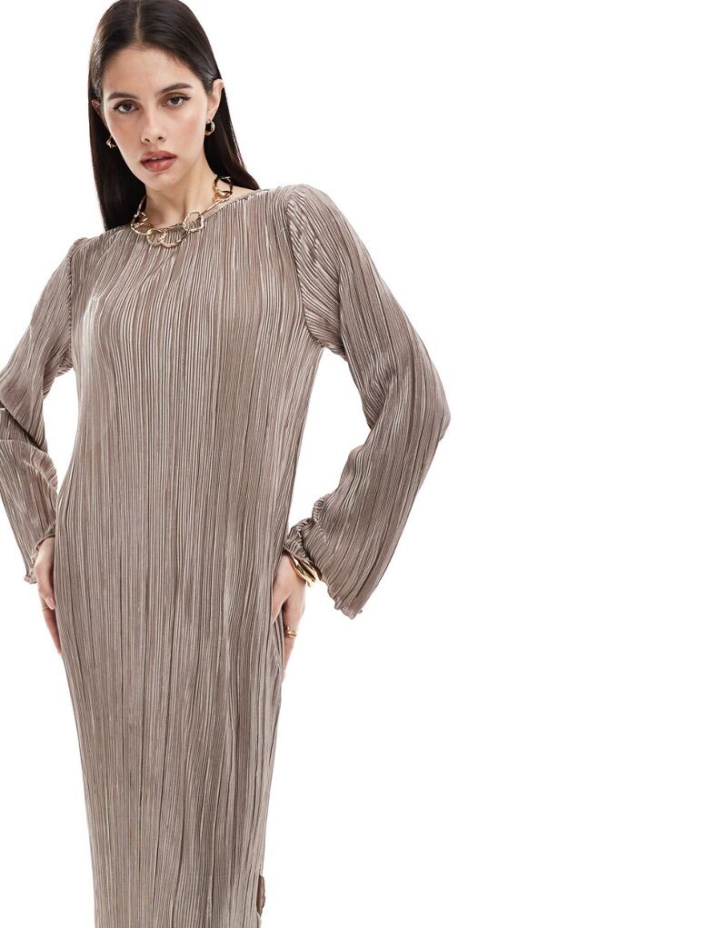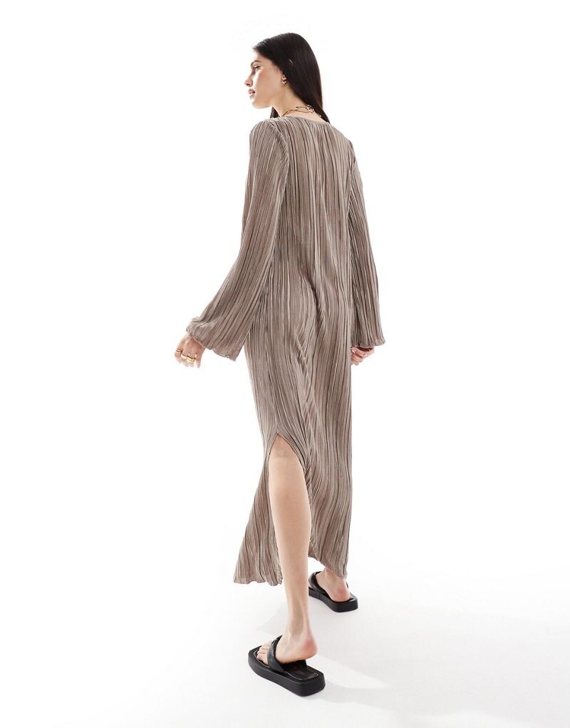 Pieces - Длинное плиссированное платье каменного цвета с разрезами по бокам