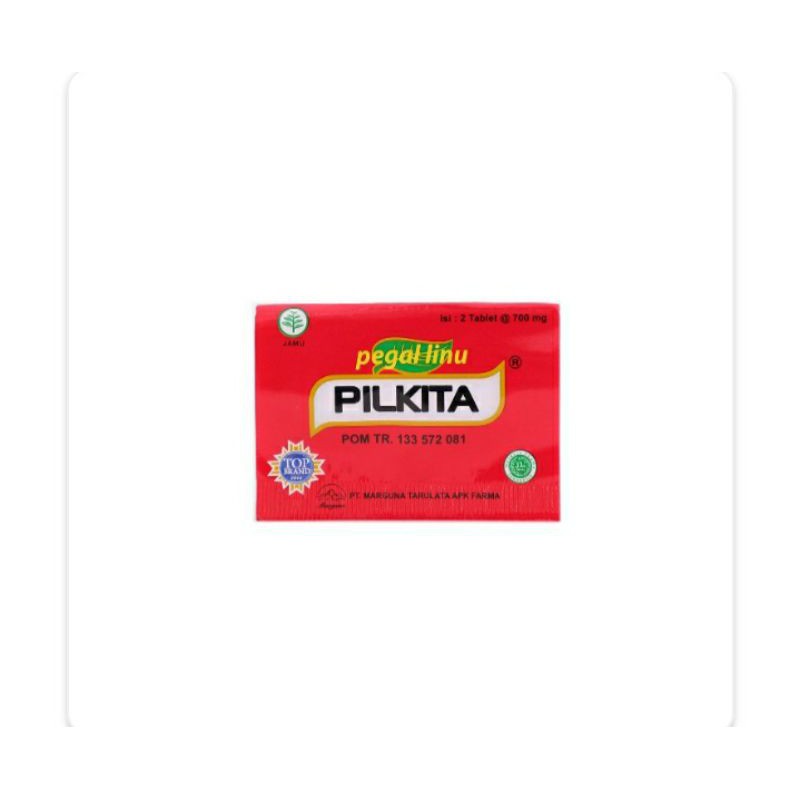 PIL KITA merupakan kaplet herbal yang berkhasiat untuk membantu menyegarkan badan dan memelihara kesehatan, memperbaiki nafsu makan, meredakan pegal linu, nyeri akibat encok, dan meredakan sakit pinggang.