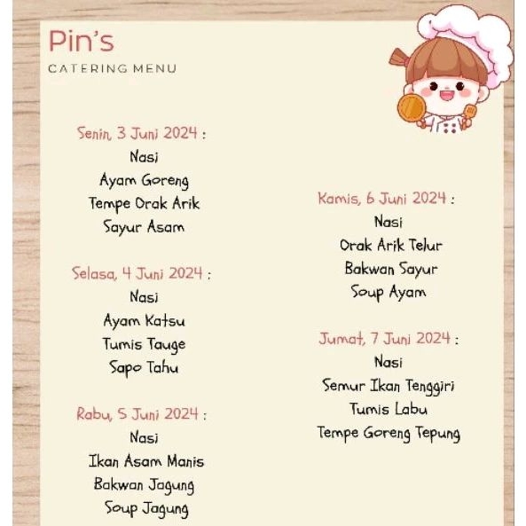 Pin's Catering periode 3 Juni sampai 7 Juni