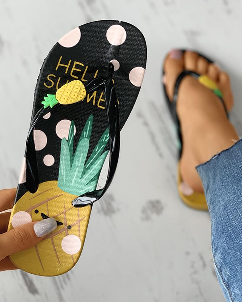 Pineapple Pattern Open Toe Flip Flops, Black