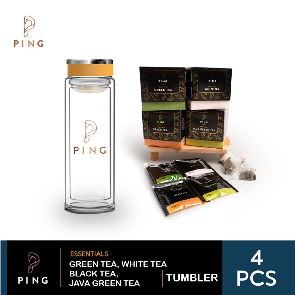 ( 1pcs PING Essentials Green Tea 37.5 gr [15 Tea Bags @2.5gr] + 1pcs PING Essentials White Tea 25 gr [10 Tea Bags @2.5gr] + 1pcs Ping Tea Essentials Black Tea 37.5gr [15 Tea Bags @2.5gr] + 1pcs PING Essentials White Tea 25 gr [10 Tea Bags @2.5gr] + 1pcs PING Double Glass Tumbler 380ml )