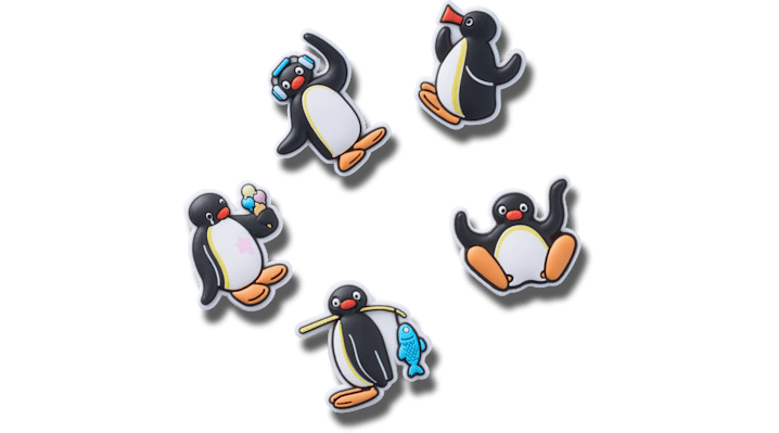 Pop some personality into your shoes with these Pingu 5 Pack Jibbitz™ charms. They’re the perfect addition to your favorite pairs of clogs, slides, and more.Not a toy. Not intended for children under 3 years of age.