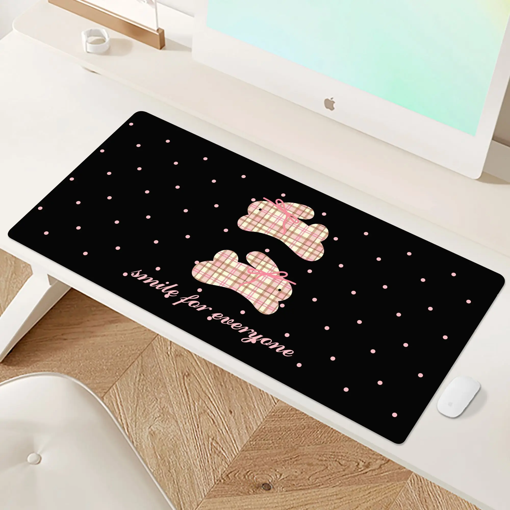 Pink Rabbit Leather Mouse Pad INS Dark Style Black Pink Rabbit Wave Point PU Desk Mat Gamer Cabinet Keyboard Mouse Pad Laptop