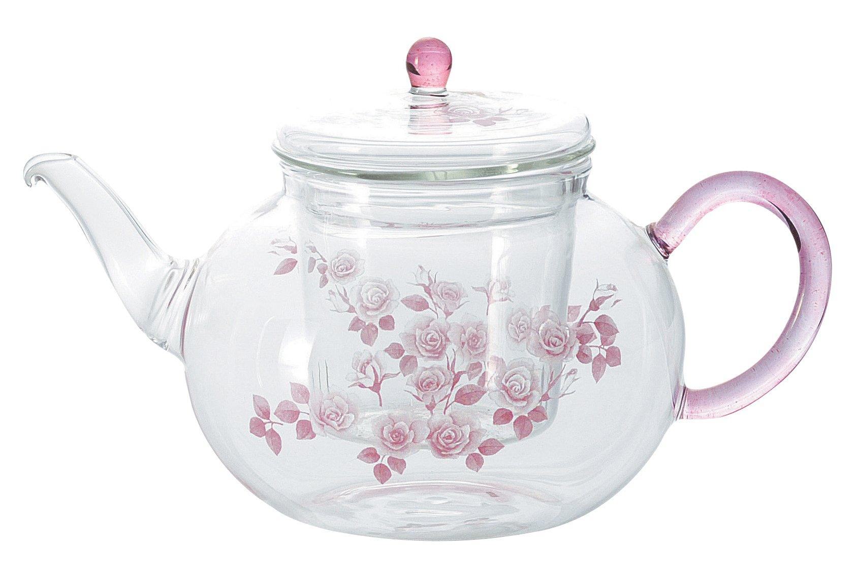 Pink Rose Heat-Resistant Glass Teapot 49P060
