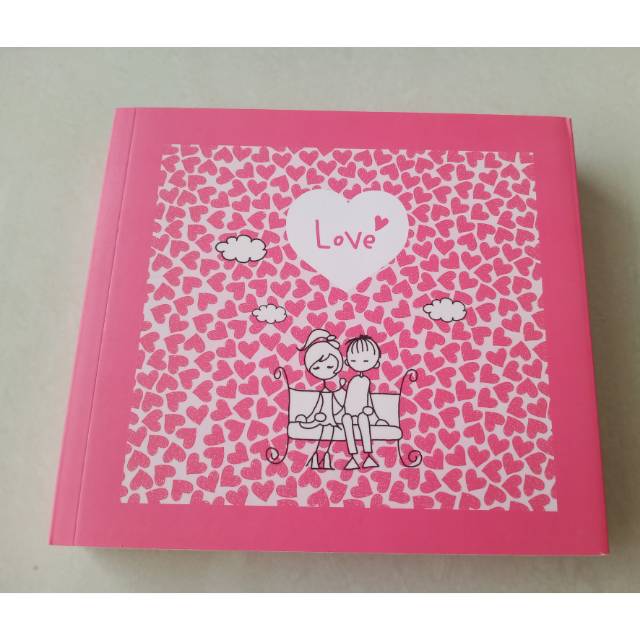 Buku diary nuansa love warna pink dengan berbagai motif di setiap halamannya.