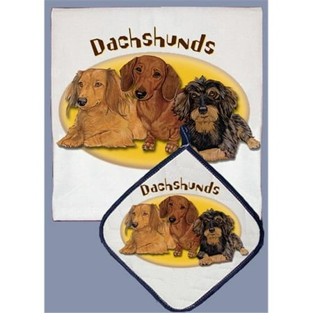 Catering to Dachshund lover enthusiasts who spend time in the kitchen this decorative set includes a dish towel and potholder and makes a great gift item for any occasion; housewarming thank you hostess or a gift exchange.Features The towel is made from 100% absorbent cotton. The potholder is the quilted type with color coordinated trim. Each kitchen set is packaged in a protective cellophane bag and makes a nice Dachshund gift item. Dish Towel Dimensions - 18 x 31 in. Pot holder Dimensions - 7 x 7 in. - SKU: ZX99PIPS328