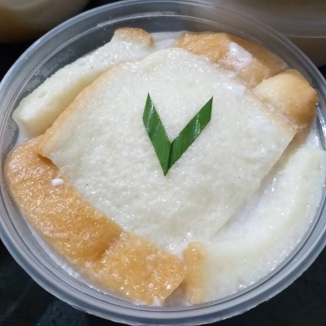 Tumpukan slice roti yang disiran oleh santan spesial di tambahkan dengan kelezatan kelapa muda.