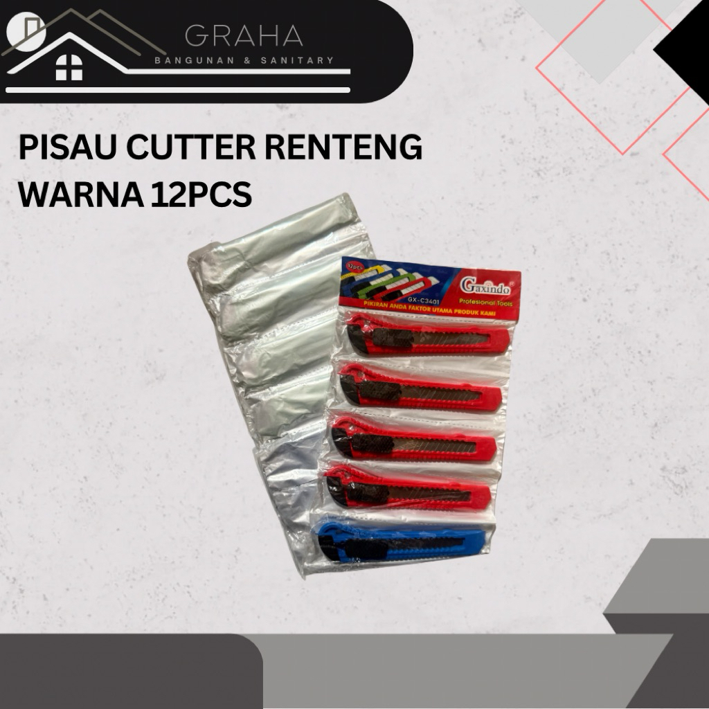 Pisau Cutter Renteng Warna 12Pcs