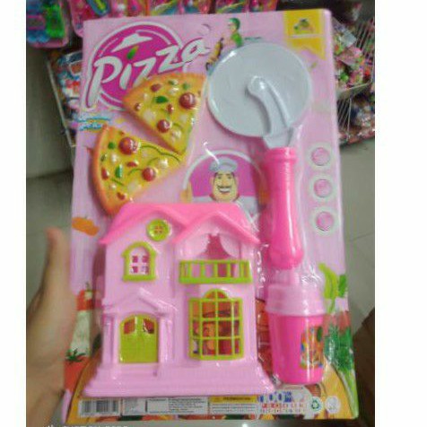 mainan anak anak pizza satu set dengan villa dan alat masak lainny