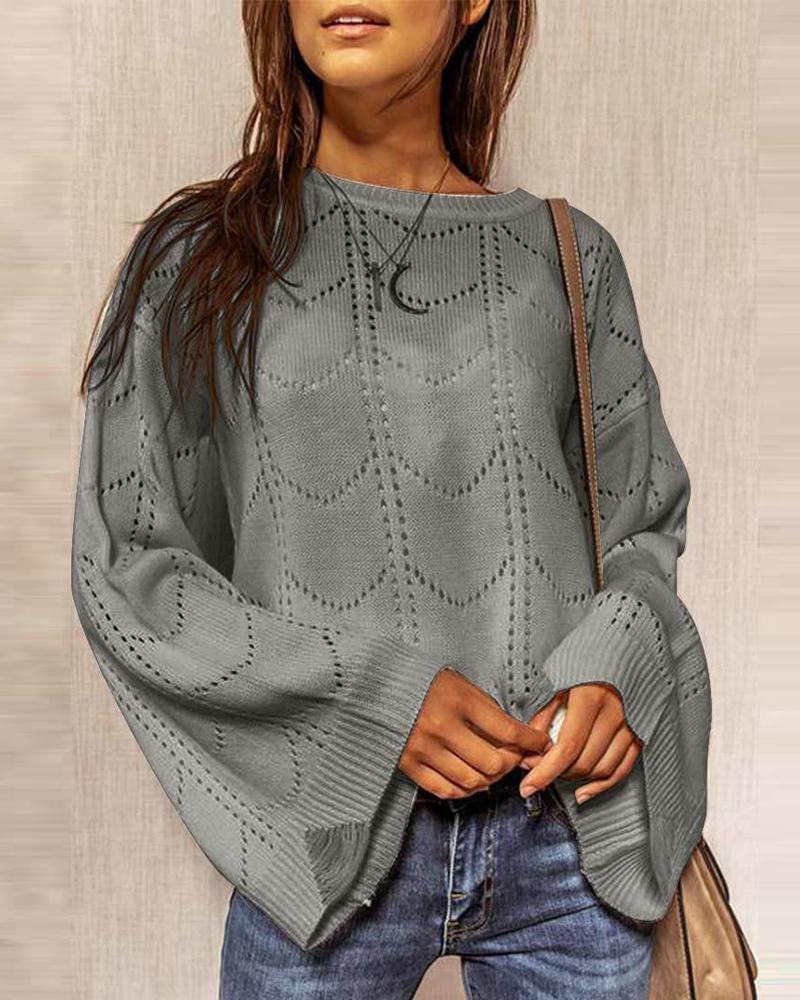 Plain Hollow-out Long Sleeve Sweater, Gray