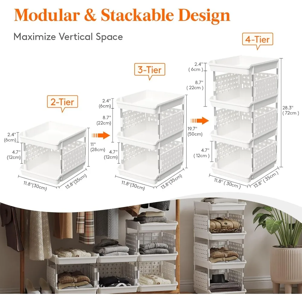 Plastic Stackable Storage Baskets 4 Tier Organizer Bins for Kitchen Pantry RV Clothes