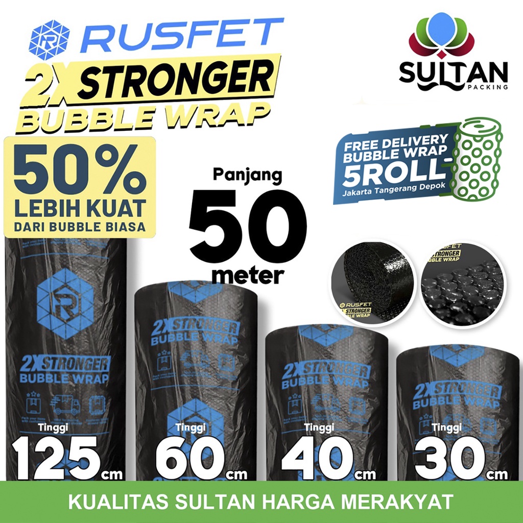 Plastik Bubble Wrap 50Meter RUSFET HITAM Bubblewrap Buble Packing Babel ROLL
