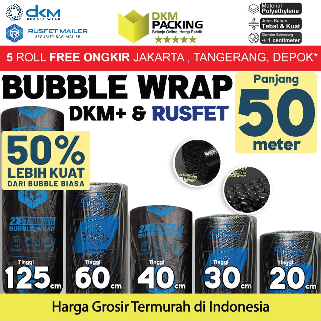 Plastik Bubble Wrap 50Meter RUSFET HITAM Bubblewrap Buble Packing Babel ROLL