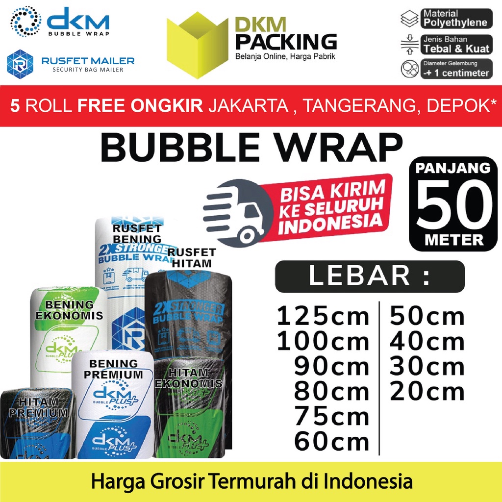 Plastik Bubble Wrap Packing 50M RUSFET DKM+ TEBAL Bubblewrap ROLL
